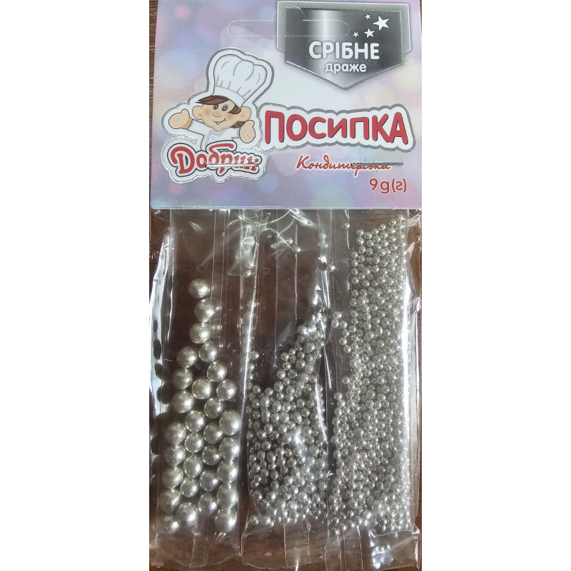 Посипка кондитерська "Срібне драже" 9гр/50шт (3стіки)