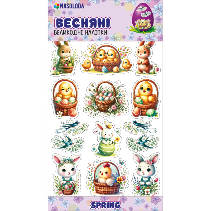 Великодні наліпки "Весняні" бренду Nasoloda — товар, який створений для зручного та ефектного святкового декору. Наліпки дають змогу швидко й охайно прикрасити великодні яйця без складної підготовки. Дизайн Весняні допомагає оформити кошик, подарунковий набір або домашній стіл в єдиному стилі.