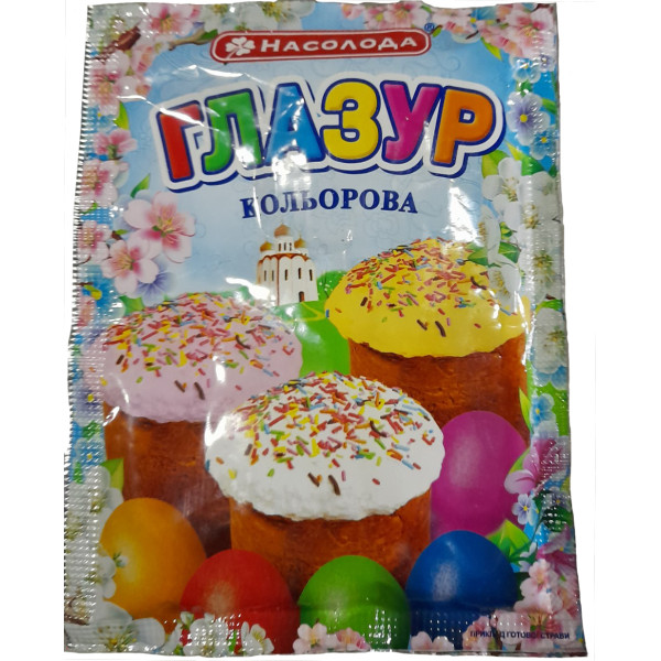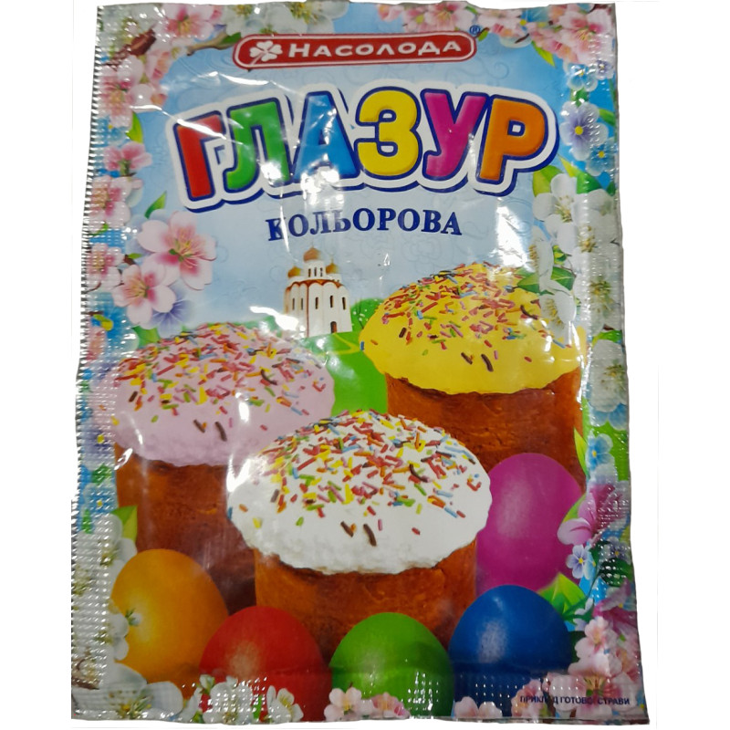 Пасхальна глазур кольорова 75г/60шт бренду Nasoloda — товар, який створений для зручного та ефектного святкового декору. Глазур підходить для покриття пасок, кексів та іншої домашньої випічки, допомагаючи отримати акуратну й рівномірну поверхню. Відтінок кольорова робить святковий декор більш виразним.