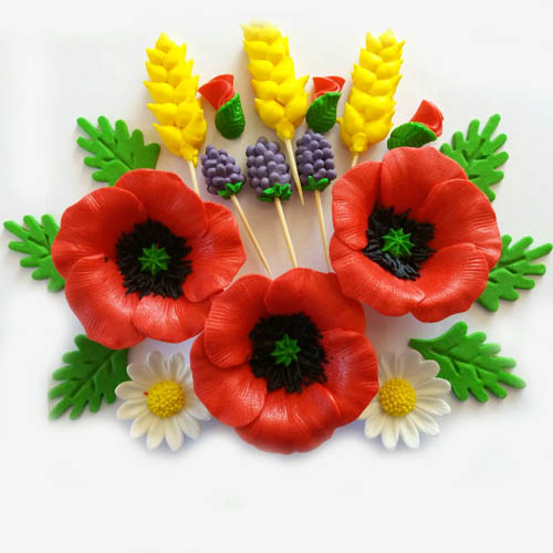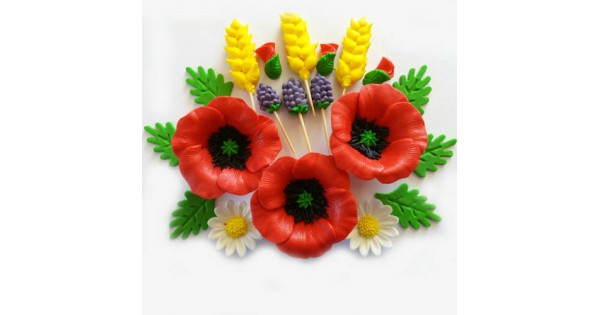 Кондитерська прикраса "Маки малі" - прикраси для декорування кондитерських виробів. Значно економить ваш час на прикрашання. Готові десерти матимуть яскравий вигляд з нашими прикрасами. Виготовлено на основі цукру, придатні для вживання.