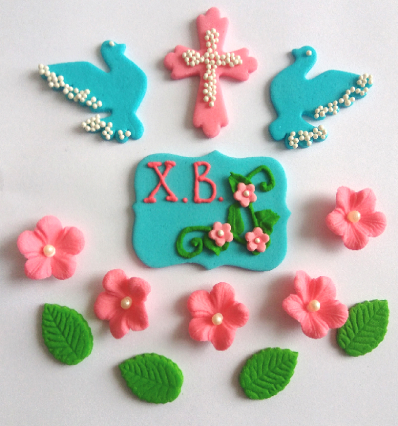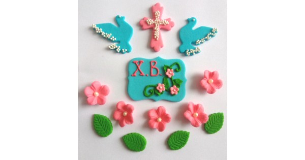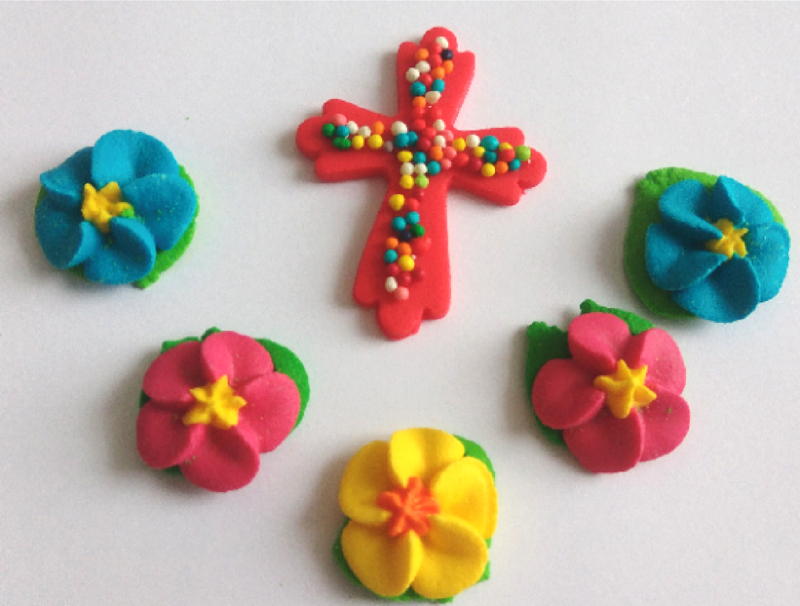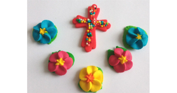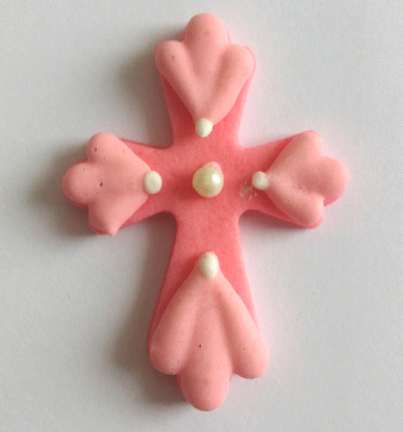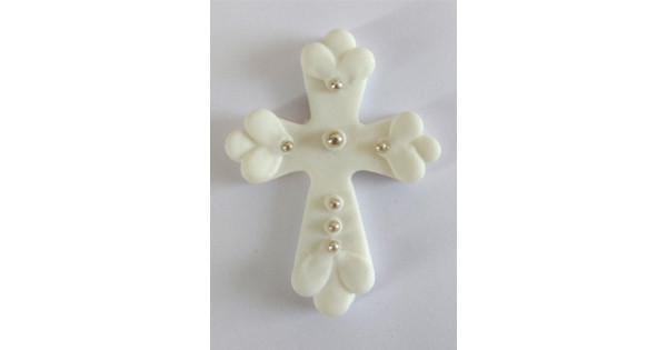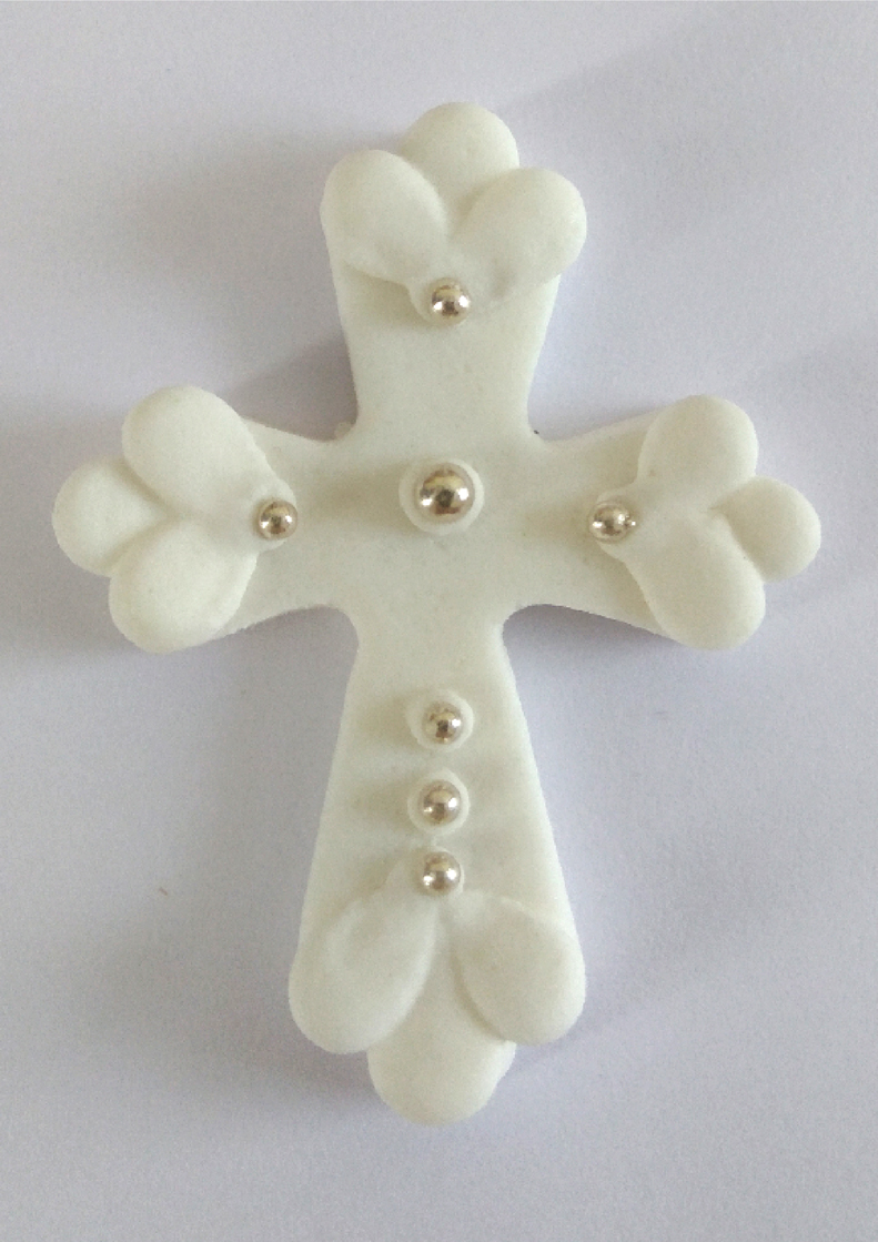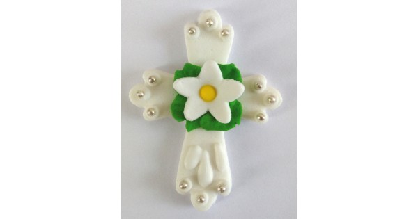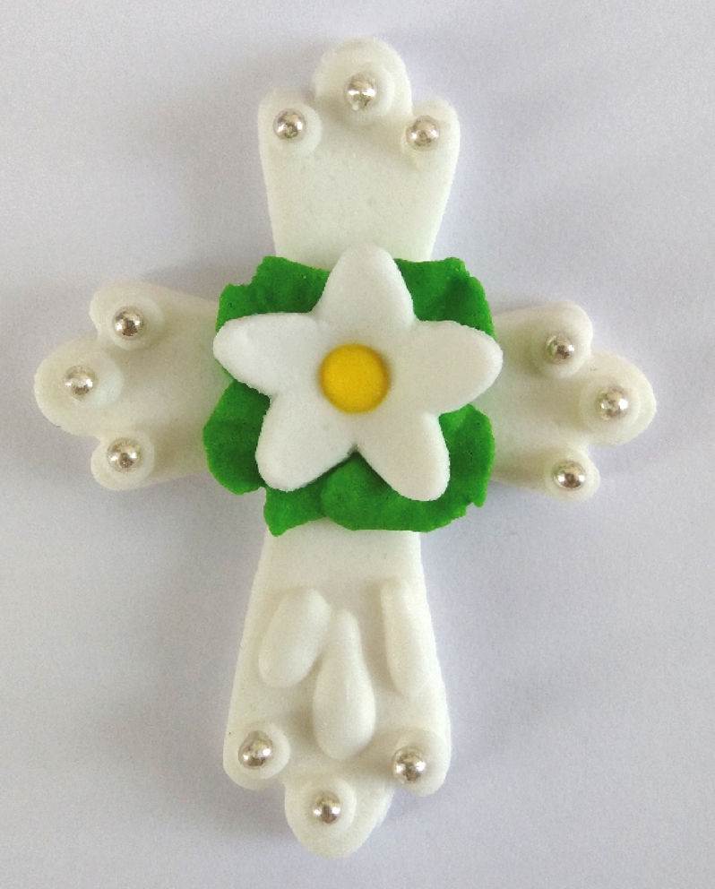 Цукрова фігурка "Хрестик з квіточками". Використовують при декоруванні кондитерських виробів: тортів, тістечок, капкейків, короваїв та інше. Готові фігурки спрощують роботу кондитера і додають необхідного ефекту кондитерському виробу.