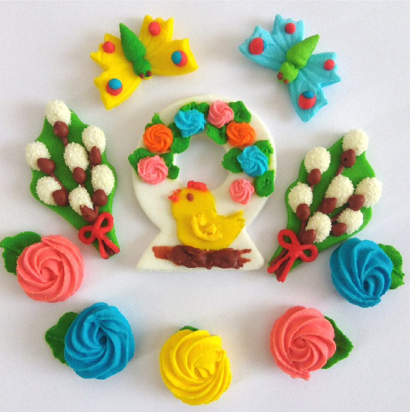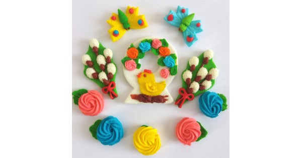 Кондитерські прикрасиНабір Метелик з вербою . Готовий набір кондитерських фігурок для прикрашання великодніх пасок. В набір входить: п'ять маків, три листочки, курчатко з яєчком, ХВ, дві верби. Створюйте цікавий дизайн для великодніх пасок.