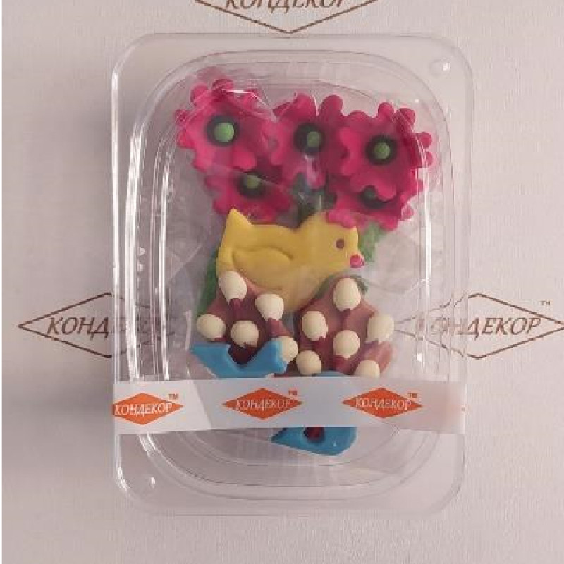 Кондитерські прикраси "Набір №6 (Маки)". Готовий набір кондитерських фігурок для прикрашання великодніх пасок. В набір входить: п'ять маків, три листочки, курчатко з яєчком, ХВ, дві верби. Створюйте цікавий дизайн для великодніх пасок.