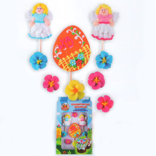 Фігурка виготовлена з цукрової пасти, упакована в пластикову коробочку. Н=50мм*D=100мм. У ящику 21 уп.