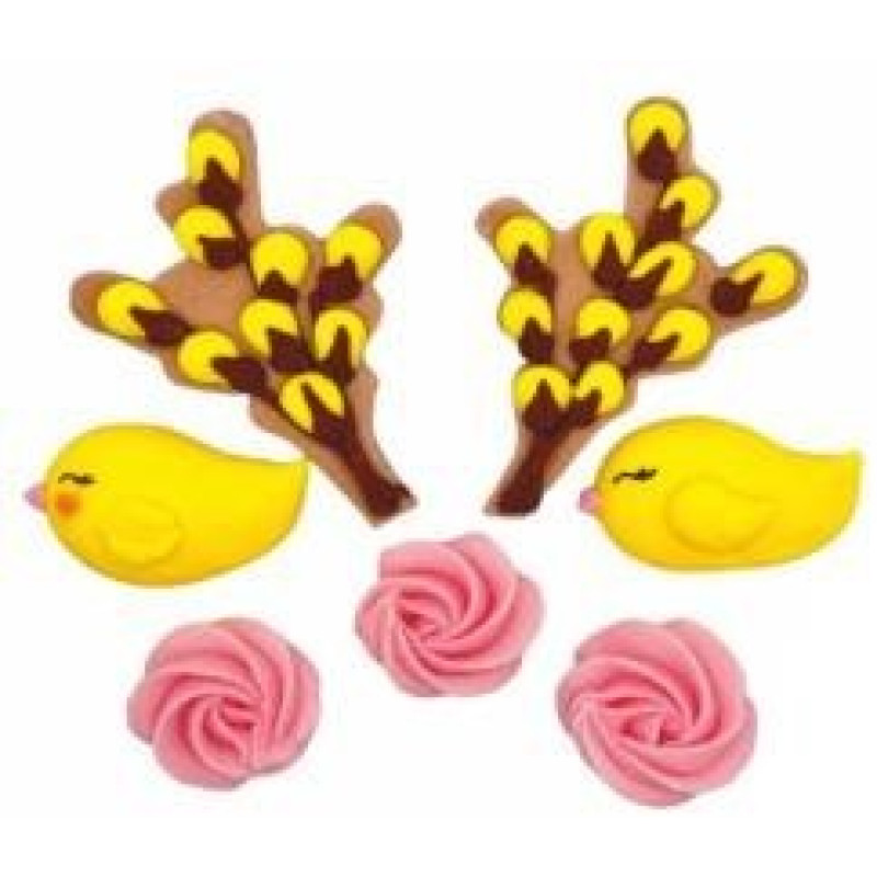 Віночок із голубами – прикраса завдяки тому, що вже готова до застосування, дозволить швидко додати яскравих фарб святковому столу. Цей великодній набір із цікавих кондитерських фігурок додасть вишуканої краси Вашим кулінарним шедеврам. Дозволить по-новому прикрасити паски або цілу святкову композицію. Ці оригінальні їстівні фігурки виготовлені із цукрової мастики із застосуванням натуральних барвників.