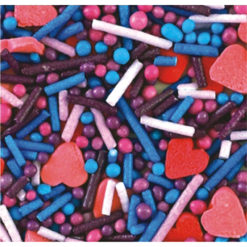 Посипання "Сердечка мікс" №8. Прикраса для кондитерських виробів, виготовлена на основі цукру. Додайте романтики та ніжності готовому кондитерському виробу за допомогою кольорової посипки. Посипка їстівна, виготовлена з безпечних інгредієнтів та харчових барвників.