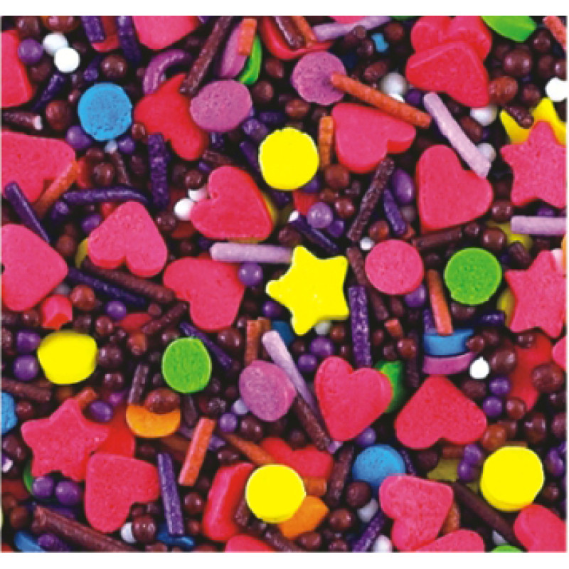 Посипання "Сердечка мікс" №9. Прикраса для кондитерських виробів, виготовлена на основі цукру. Додайте романтики та ніжності готовому кондитерському виробу за допомогою кольорової посипки. Посипка їстівна, виготовлена з безпечних інгредієнтів та харчових барвників.